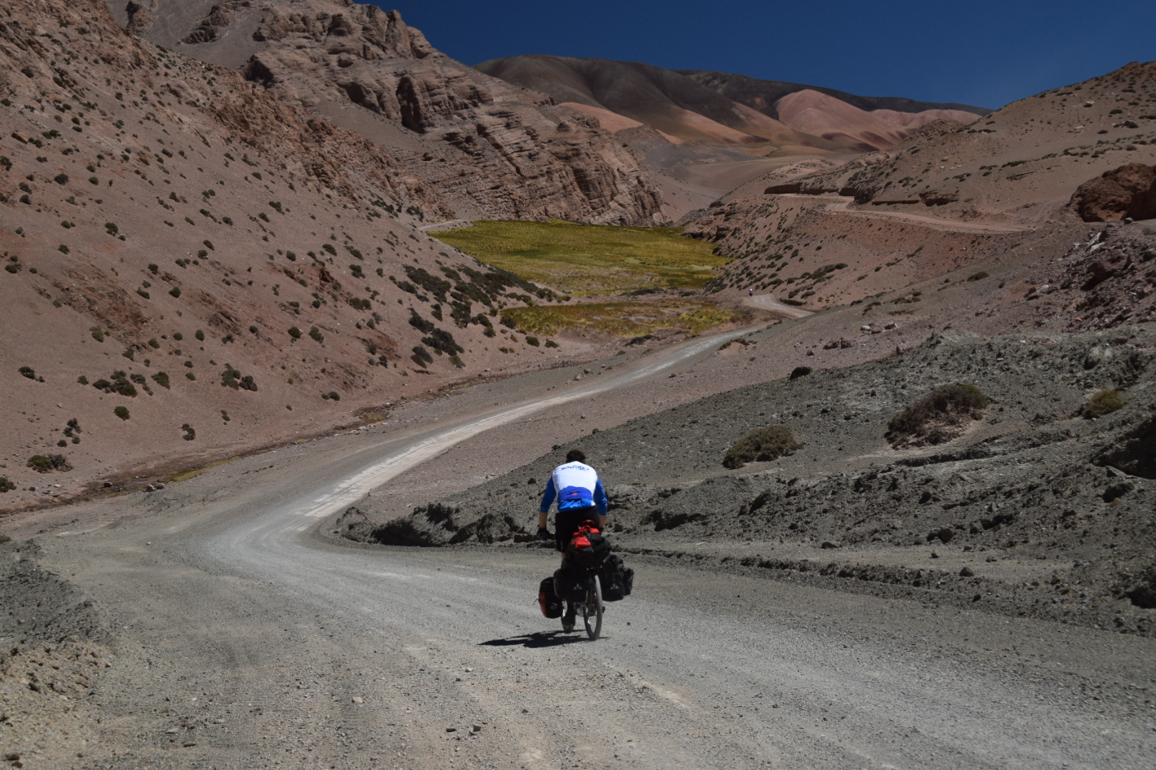 Partiamo di buon ora da Vinchina…..e subito dopo il paese ci aspetta un guado causa lavori sul ponte, quindi via le scarpe e tutti dentro…..ci addentriamo in un canyon dai colori stupendi con tratti di strada crollata causa le recenti pioggie…..poi dopo aver mangiato un panino lungo la strada in un paese fantasma…iniziamona salire verlo las Chacritas, la strada sale con una pendenza del 3, 4,5 % ma continua e inesorabile per poi aumentare verso alla fine quando avvistiamomil campo sono quasi le 6 siamomcome ogni sera molto stanchi…..i minatori ci accolgono con grande calore ci assegnano delle camerate e ci offrono docce calde e la cucina dove possiamo con l’aiuto del loro cuoco mangiarebun buon pasto caldo….e poi tuttina nanna…..