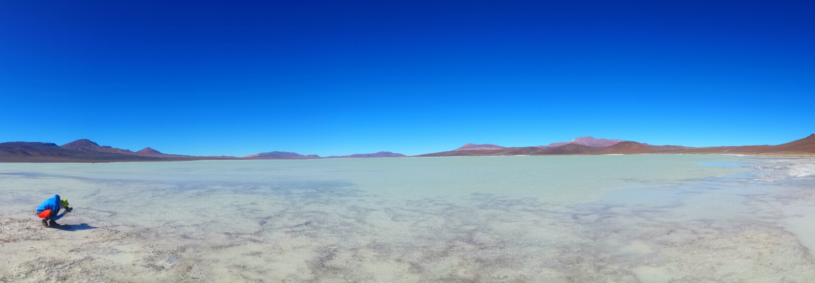 Risveglio fantastico di fronte alla laguna….nella notte la temperatura è scesa molto -10 di sicuro abbiamo le bottiglie di acqua completamente ghiacciate…..i primi raggi di sole ci riscaldano le tende e allora fuori per godersi anche quest’alba….colazione si smonta il campo e si riparte per tappa facile sulla carta..poco dislivello dei saliscendi tra i 4000 e 4350…..ed ecco che dopo la doverosa visita alla laguna dove vediamo flamingo rosa e altri animali…..si scatena l’inferno, vento contro da mal di testa, percorriamo 40 km in 4 ore!!